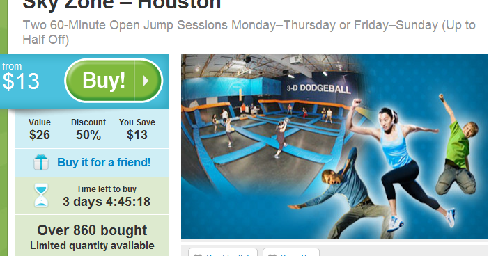 Daily Deal Offer: Sky Zone Cerritos - Jump Passes or Birthday Party ... Jump Passes or Birthday Party Package at Sky Zone Cerritos (Up to 35%). Four Options Available. Sky Zone Cerritos. PRICE $199 View Deal. Reg Discount Savings; $300: 33%: $101: Limited time remaining. Share ... Sky Zone - Westminster. Westminster, CA. Admission for One, Birthday Party, or Facility Rental at Fly High Adventure Parks (Up to 38% ...