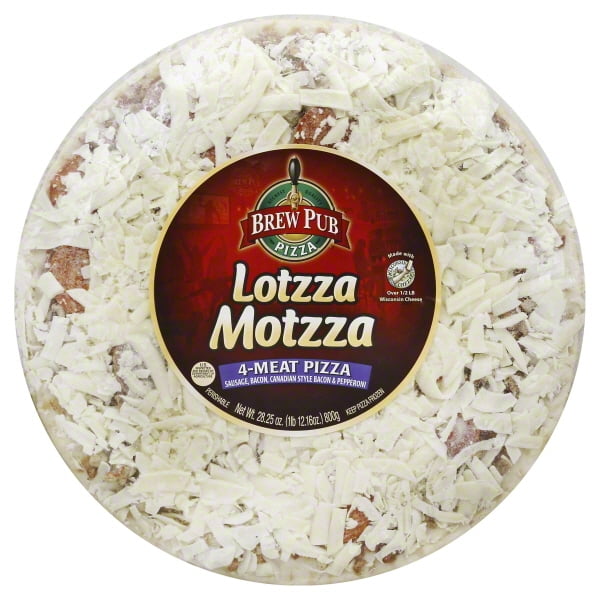 Brew Pub Lotzza Motzza Supreme Frozen Pizza - 27.95oz Description. Brew Pub Lotzza Motzza pizza is made with the hungry in mind. This 12" pizza starts with a rich and savory tomato sauce on a crispy crust, topped with premium sausage and pepperoni, mushrooms, onions, green and red peppers, and loaded with over ½ lb of award-winning Wisconsin mozzarella cheese.