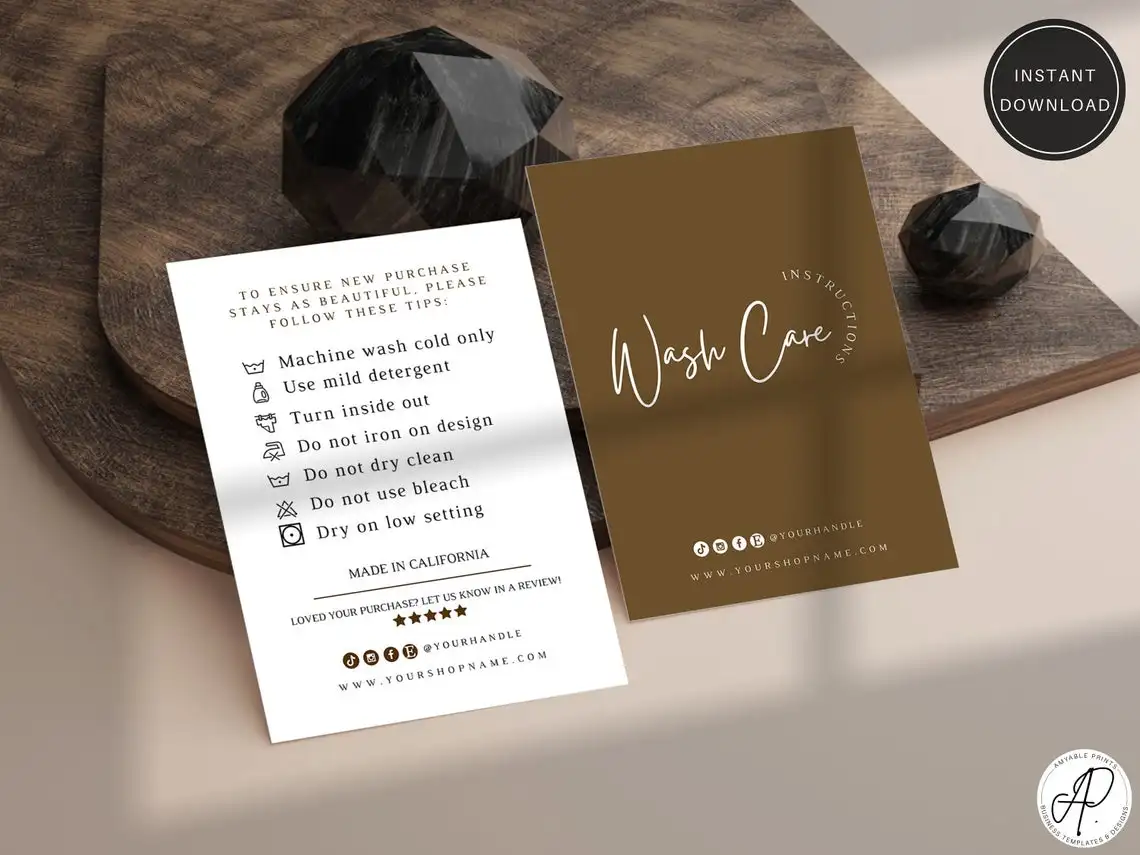 Printable Washing Instructions, Editable Care instructions template, Care Card For shirts, Shirt Packaging, Instant Download, Wa