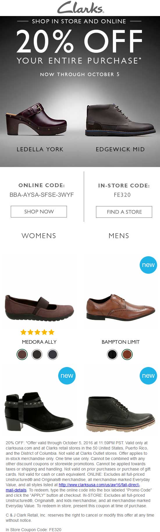 Clarks 20 off coupon in store